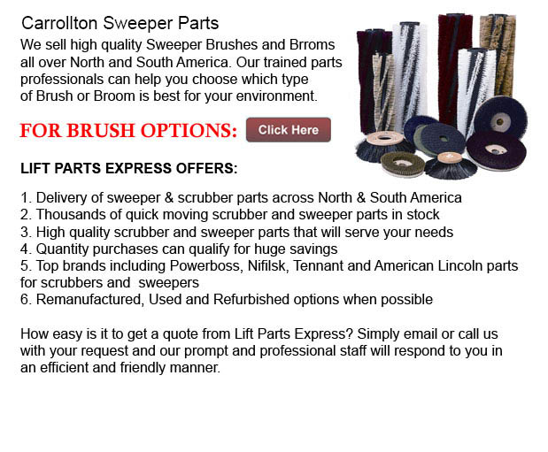 Sweeper Parts Carrollton - Carrollton City is situated roughly 18 miles north of Dallas on the Interstate Highway I-35. It is surrounded by several Texas communities; Addison to the east, Farmer's Branch to the south and Coppell to the west. Due to its central location, it is part of three Texas counties: Collin, Denton and Dallas. Carrollton is technically a suburb of Dallas City and as such is considered a part of the Forth Worth-Dallas metropolitan area. The Texas State Highways 121 and 190 likewise service Carrollton.